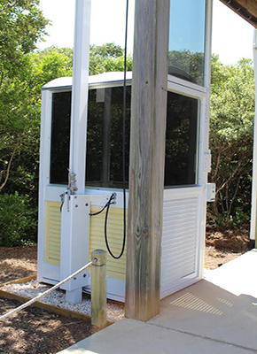 The Bellboy Outside Elevator is a fully code compliant platform lift meeting all design, installation and safety codes. Designed with safety in mind, the door interlocks, pan switch, emergency safeties, and double drive system ensures safe, reliable operation in addition to a comfortable ride.